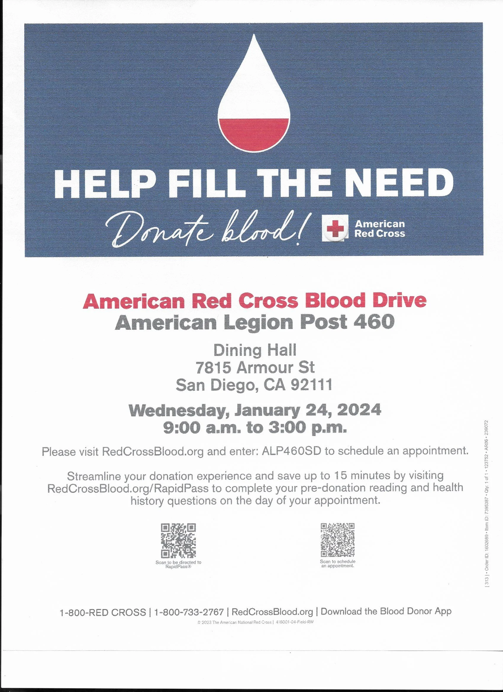 For an appointment, please visit redcrossblood.org (sponsor code: ALP460SD) or call 1-800-RED CROSS (1-800-733-2767)
